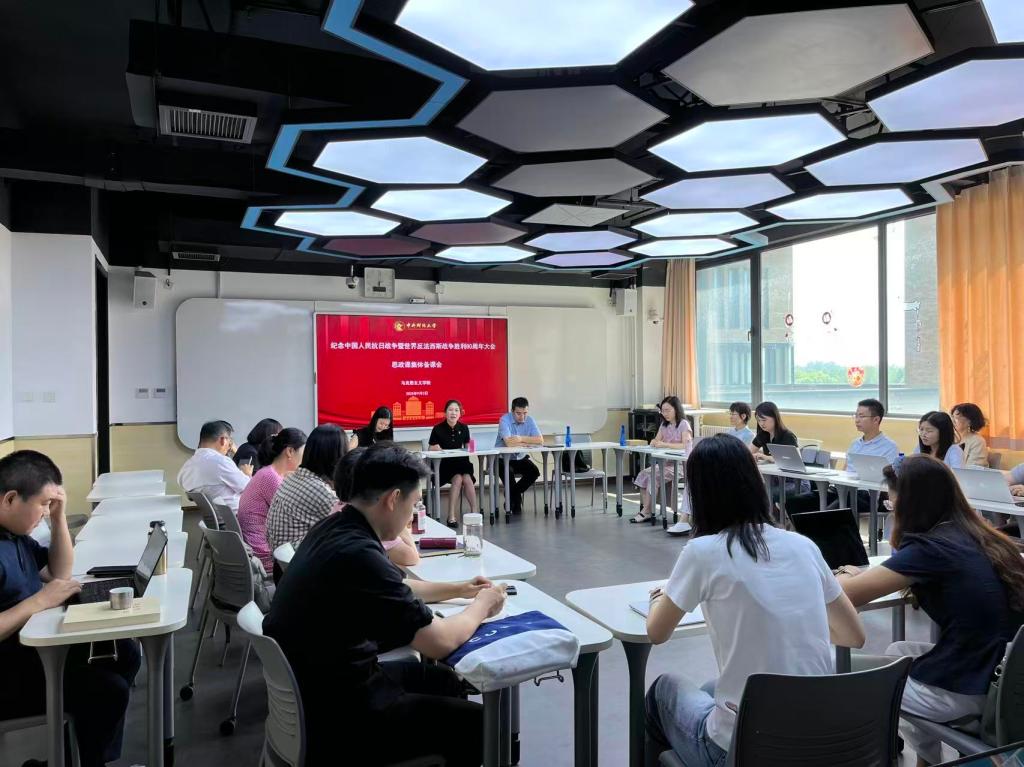习近平新时代中国特色社会主义思想概论教研室张宏博老师表示,要在教学中结合纪念大会将坚持中国共产党领导的重要意义讲清楚,系统融入阅兵盛典所展现的新时代伟大成就,切实增强员工“四个自信”;邱赛男老师则表示,应通过史论结合的方式,讲透中国共产党在抗日战争中的中流砥柱作用,同时引导员工从人类命运共同体高度理解多边主义和国际公平正义的重要性。思想道德与法治教研室姚文杰老师表示,对历史最好的纪念,就是创造新的历史。要通过讲好中国人民抗日战争的壮阔历程,阐明人类文明发展的大势,引导员工主动弘扬伟大抗战精神,以青春奋斗书写时代答卷。中国近现代史纲要教研室李扬老师提出,要坚持讲好抗战故事、弘扬抗战精神,帮助员工树立正确历史观,坚定理想信念,将爱国情、强国志、报国行融入民族复兴的伟大实践。马克思主义基本原理教研室董良杰老师表示,应善于运用马克思主义的立场、观点和方法,引导员工树立正确的历史观,理解中国坚定站在历史正确的一边,坚持走和平发展道路,与世界各国人民携手构建人类命运共同体,这是对伟大抗战精神最好的继承和发扬。毛泽东思想和中国特色社会主义理论体系概论教研室郭红梅老师指出,思政课应引导员工深刻认识党的领导是中华民族掌握自身命运的根本,增强听党话、跟党走的政治自觉;同时要引导员工正确认识中国抗日战争的世界意义,树立正确的国家安全观。刘怡彤老师表示,要坚持以科学历史观引领抗战史研究,通过扎实史料和深入学理分析,讲透中国人民抗日战争的历史意义,善用伟大抗战精神铸魂育人,为青年学子点亮坚定、熠熠的信仰之光。