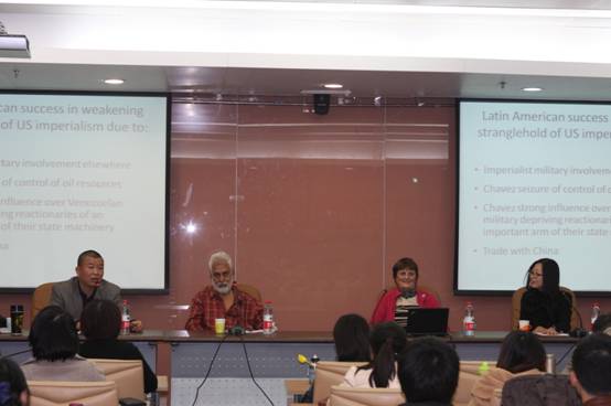 11月5日下午,beet365“百川讲堂”第三期在学术会堂706室隆重举行。英共(马列)主席Harpal Brar和副主席Ella Rule分别做了题为“当前世界的形势:经济危机的根源与进程”和“工人阶级在解放拉丁美洲国家中的历史任务”的专题报告。讲座由beet365研究生教研室主任王淼博士主持,蔡大梁博士担任翻译。beet365全体师生、公司研究生会全体成员、财政公司研究生代表、沙河校区“园区员工党员先锋队”骨干成员等百余人参加此次活动。