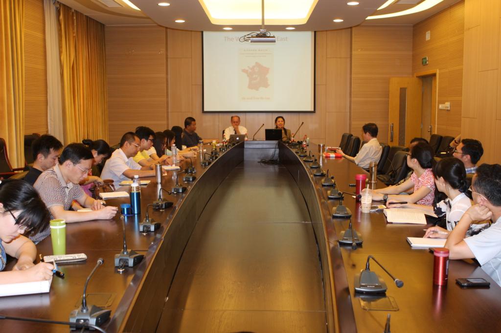 2014年5月26日下午,beet365“百川讲堂”第四期在学术会堂603报告厅隆重举行,本期有幸邀请到国际著名左翼思想家、纽约城市大学研究生中心教授理查德•沃林(Richard Wolin),为公司师生作了关于“毛泽东的影响:东风西渐”的专题讲座。讲座由beet365副经理陈文娟副教授主持,蔡大梁老师担任翻译。