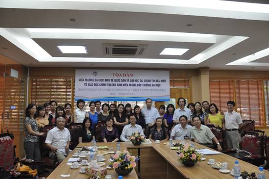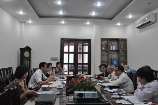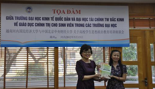 下午,国民经济大学马列系全体教师在马列系会议室与代表团成员就高校员工思想政治教育培训展开商谈研讨。马列系主任陶芳连副教授首先介绍了该系的基本情况。该系由马克思列宁主义理论基本原理、胡志明思想、越南共产党革命路线三个教研单位组成,主导课程包括马克思列宁主义理论基本原理、胡志明思想和越南共产党革命路线,分别是5学分、2学分和3学分。该系有1名教授,4名副教授和36名讲师组成,承担全校本科生、硕士和博士政治理论公共课的教学工作。员工管理处阮黄何副处长介绍了河内国民经济大学员工思想政治教育和管理工作,主要包括思想政治教育、文体美教育、法律指导、处理学习期间的员工权力、住校员工的管理工作、奖惩管理、与校共青团配合加强员工管理工作以及员工会工作等方面。
