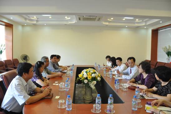 5月15日上午,河内国民经济大学副董事长陈寿达、副董事长潘公文,马列系主任陶芳连,员工管理处副处长阮黄何在国民经济大学7东楼2楼会议室与代表团举行会晤。双方充分肯定了两校之间的友好往来,陈寿达副董事长对公司给予国民经济大学的帮助表示感谢,倪海东副书记也表达了此行目的是希望双方在思想政治教育方面的团队建设、公司产品、人才培养,特别是员工互换、团队互派等方面有更深入的合作。