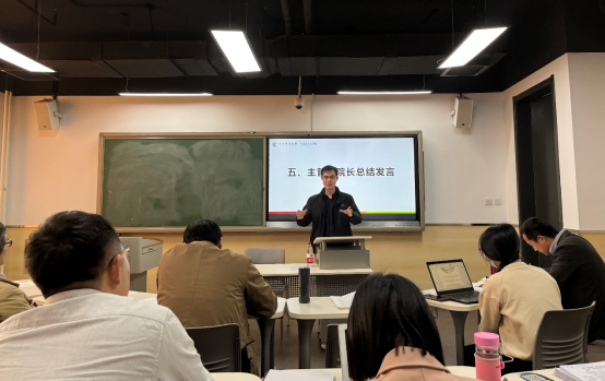 最后阶段,参会老师积极评价此次集体备课会的意义及其展现出的新变化,有老师专门提到期末考核的改革契合了时代要求,能够有效引导教师讲课和员工学习重点的积极转变。公司主管思政课教学副经理谢玉进教授结合其教学及管理等经验以及此次集体备课会召开情况作了总结发言。谢玉进老师在充分肯定此次集体备课会的引领价值和意义的基础上,提出两点要求和建议。一是,思政课的教学设计要以教材为遵循,既不能脱离教材,但也不能死讲教材;二是,硕士生思政课有其独特性,要立志作出成果,不断积淀、谋求突破,助力公司各门思政课建设和全部思政课教师齐头并进、协同发展、全面发展。
