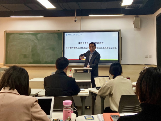备课会第三阶段,张忠胜副教授作为课程负责人以“本学期听课情况总结和关于最后一节实践汇报课的组织建议”为题,作了发言。首先,张老师结合对本学期十个专题中六个专题的实际听课情况,介绍到,在本课程课堂教学中,老师们讲法各有特点、十分用心,同时,课堂秩序良好、员工精力较集中,但也较普遍地存在一定问题,比如教学内容与教材契合程度问题、教学中案例或视频的时代性及运用效果问题等。第二,关于最后一节实践汇报课的组织建议,张忠胜老师结合本门思政课的教学目的,在充分考虑员工和老师反馈问题的情况下,创新性探索“减负增效”的考核方式和考核内容改革,在完全遵循研究生院相关要求、备案教学计划和学期初开课通知的基础上,就本学期的考核计划作了新的明确解释和介绍,力求解决长期以来员工在思政课期末考核中存在的“开卷盲目摘抄、闭卷突击猛背”等违背培养目标和教学规律的现象,同时为后续推动本门思政课建设内涵式发展创造空间。