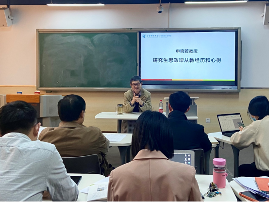 主讲教师主题发言环节,受本次集体备课会邀请,申晓若教授和哈战荣副教授分别作了主题发言。申晓若教授以“研究生思政课从教经历和心得”为题,回顾了其自1997年入职以来所经历的硕士生思政课的演变历程,并结合自己的授课经历分享了其关于本课程教学的一些思考。申晓若教授认为,首先,态度上,应该高度重视研究生思政课,主讲教师涉及三个主要建制教研室,老师们只有在本课程上多投入、多下功夫,教学才会有效果;第二,内容上,本课程应该讲出深度,作为一门针对研究生开设的思政课,应该和本科生课程有所区别,同时各专题焦点尽可能不要太大,太大就不容易讲出深度,课程内容要紧跟时事,为员工补齐最新时政内容,课程可灵活创设和运用机动课时。此外,申晓若教授最后专门建议老师之间要多多交流和沟通,共同努力将这门课程办好、讲好。