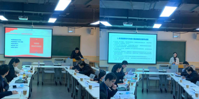 邱仁富教授、王静副教授围绕党的二十大精神如何融入习近平新时代中国特色社会主义思想概论课做主题发言。邱仁富教授以《二十大精神入课堂》为题,从办好人民满意教育的战略定位、“照着讲”到“接着讲”的融入思路、聚焦十个问题的融入方式等三个维度阐释了对党的二十大精神入课堂的思考。王静副教授以《科教兴国战略融入习近平新时代中国特色社会主义思想概论课》为题,强调“四个讲清楚”即讲清楚科教兴国战略的发展和成就、讲清楚新时代科教兴国战略的重要性、讲清楚科教兴国战略的着力点、讲清楚新时代青年的责任与担当。