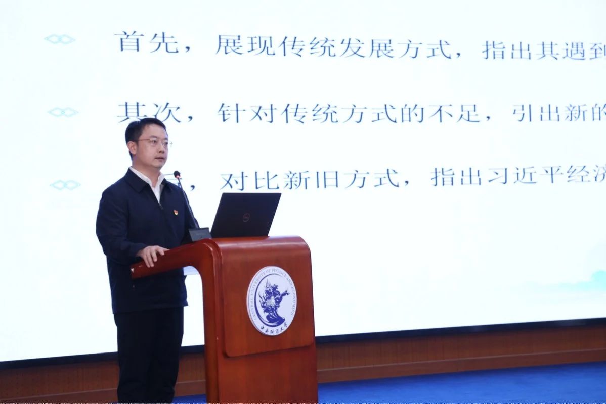 beet365思政课教师李扬以《以高质量发展推进中国式现代化》为题汇报了一体推进习近平经济思想融入思政课教学在大学学段的教学设计。李扬从学情分析、破解之道、教学设计、教学预期四个方面展开教学分享。李扬指出,习近平经济思想肩负着引领中国经济发展方式转型的历史重任,因此必须结合这一伟大实践来理解习近平经济思想。在教学中,首先要讲清楚传统发展方式,深刻认识其贡献、局限与面临的挑战;其次,要讲清楚新的高质量发展方式;最后,对比新旧发展方式,指出习近平经济思想在推进中国经济由高速增长转向高质量发展中的历史作用。