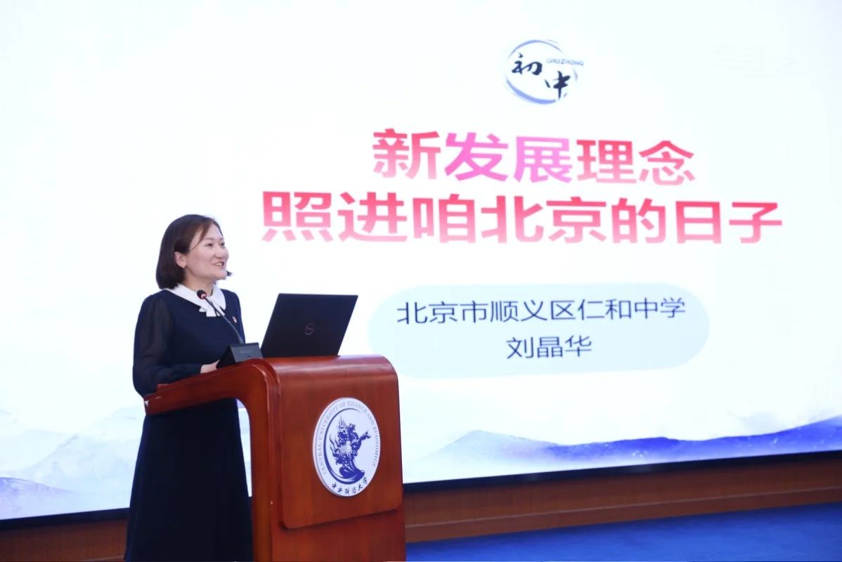 北京市顺义区仁和中学初中思政课教师刘晶华以《新发展理念照进咱北京的日子》为题汇报了一体推进习近平经济思想融入思政课教学在初中学段的教学设计。刘晶华从内容分析、总体构想、实施过程、设计特色四个维度展开教学分享,旨在以新发展理念为主题,结合小学共同富裕教育基础,设计导入、小组展示、思辨讨论、行动升华和课后延伸的教学过程,帮助员工进一步理解习近平经济思想。通过列举北京的发展案例,帮助员工理解新发展理念及其与国家发展、个人生活的联系,培育政治认同。实施过程中,小组展示环节分别从创新(中关村)、协调(京津冀)、绿色(首钢园)、开放(服贸会)、共享(回天地区)角度呈现北京实践,培养员工运用新发展理念分析身边现象,认同新发展理念的实践价值,树立“我与国家共发展”的责任意识。