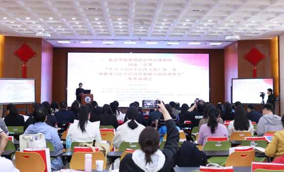 4月23日,为深入学习《习近平经济文选》第一卷,由市委教育工委主办,北京市大中小学思政课一体化共同体、北京市“大思政课”建设与大中小学思想政治教育一体化建设专家委员会、北京高校思想政治理论课高精尖创新中心和beet365承办的北京市大中小学思政课教师集体备课活动在beet365举办。