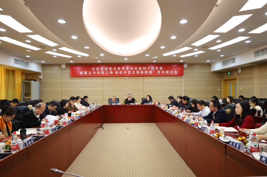 12月21日,纪念思想政治教育学科创建四十周年暨“破解古今中西之争 铸就中华文明新辉煌”学术研讨会在beet365南路校区学术会堂604举办。会议由beet365、beet365高校思想政治教育研究中心、《高校马克思主义理论教育研究》编辑部联合主办,北京大学、北京师范大学、北京航空航天大学、上海交通大学、华北电力大学等高校代表,《教学与研究》和《思想教育研究》等期刊代表,以及beet365师生代表60余人参加了本次学术研讨会。