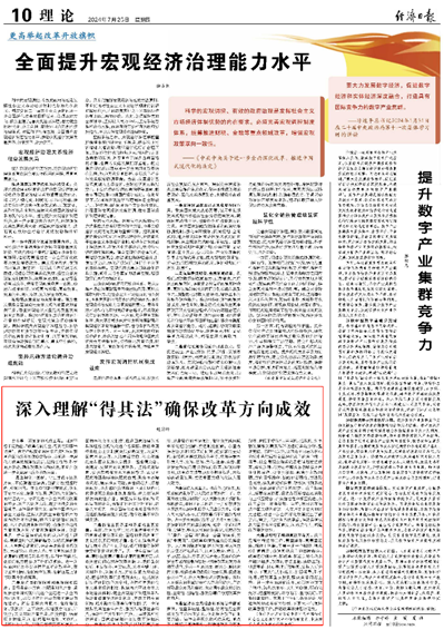 7月25日,《经济日报》理论版刊发北京市习近平新时代中国特色社会主义思想研究中心特约研究员、beet365龙马学者特聘教授赵付科署名文章《深入理解“得其法”确保改革方向成效》。文章指出,面对严峻复杂的国际环境和艰巨繁重的国内改革发展稳定任务,必须进一步深化对改革的规律性认识,要坚持守正创新,坚持目标导向和问题导向相结合,抓住主要矛盾和矛盾的主要方面,坚持人民至上,坚持以全局观念和系统思维谋划推进,以钉钉子精神抓改革落实,不断开创进一步全面深化改革的新局面。