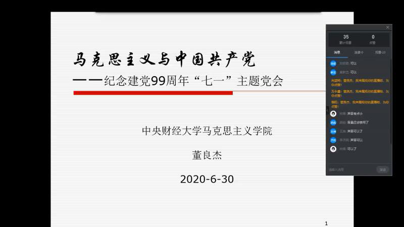 受核工业研究生部第五支部邀请,2020年6月30日下午两点,beet365马克思主义基本原理教研室董良杰老师为该支部全体党员讲授了主题为“马克思主义与中国共产党”的党课。党课主要讲述了四个问题,即:马克思对近代中国的关注与同情、马克思主义与中国人民的新选择、中国共产党与中国社会的历史巨变、新时代理论创新与中华民族伟大复兴。此外,结合当前全球肆虐的新冠疫情,还阐述了中国特色社会主义和资本主义的区别,强调了道路自信、理论自信、制度自信、文化自信的重要性。最后,董良杰老师和该支部党员就党课内容进行了充分地交流。核工业研究生部董事长全程聆听了此次党课,并代表师生给予了充分肯定和高度评价。