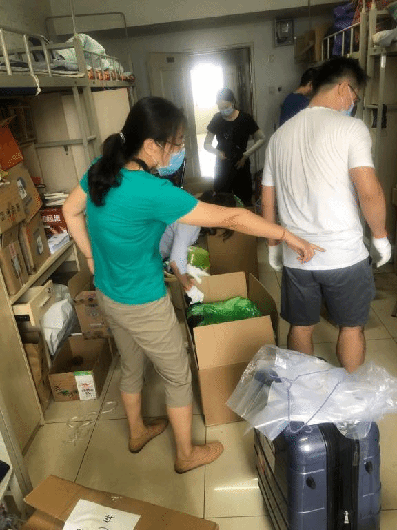 徐芳、杨向鹏、王亚男、朱书涵等同志在新冠疫情导致员工无法返校的情况下,亲自帮员工打包行李并寄出。