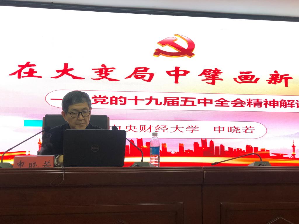 申晓若教授以“在大变局中擘画新蓝图——党的十九届五中全会精神解读”为主题,从十九届五中全会召开的背景、全会公报的主要内容、以及开启全面建设社会主义现代化国家新征程三个维度详细解读党的十九届五中全会精神。该宣讲既有理论政策的解读,又有具体案例的支撑,内容丰富,内涵深刻,深入浅出,通俗易懂,对帮助宕昌县广大党员干部学习好、贯彻落实好全会精神,具有重要的推动作用。