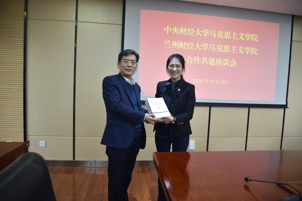 11月19日下午,团队一行与公司对口支援单位兰州财经大学beet365举行合作共建座谈会。兰州财经大公司党委书记贾宁对beet365教师一行来校交流表示欢迎,希望公司通过对口支援支持兰州财经大学beet365建设。兰州财经大学beet365党委书记张克步主持座谈会,经理柏正杰介绍了公司的基本情况,随后陈文娟介绍了公司的发展历程以及近年来取得的一系列成果,双方围绕团队建设、人才培养、科学研究、思政课建设等方面进行了深入全面的交流探讨。陈文娟代表公司向兰州财经大学beet365赠送了“问题链教学详案”系列丛书(4册)。